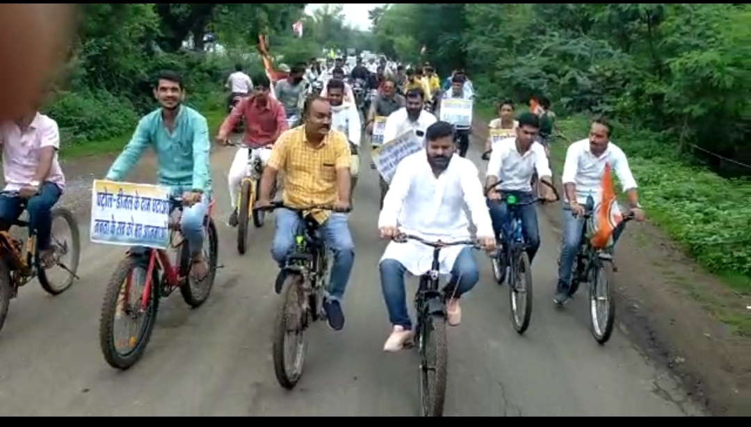 -पेट्रोल और डीजल के दामों में लगातार वृद्धि के विरोध में मंगलवार को युवा कांग्रेस ने लगभग 500 युवाओं के साथ जन आक्रोश साईकिल रैली निकाल कर विरोध प्रदर्शन किया। भारतीय युवा कांग्रेस कमेटी के आह्वान पर केन्द्र की मोदी सरकार पर आपदा में अवसर तलाशते हुए पेट्रोल व डीजल के दाम बढ़ाने का आरोप लगाते हुए कांग्रेसियों ने जमकर हल्ला बोला। युवा कांग्रेस विधानसभा अध्यक्ष कृपालसिंह मकवाना एवं ब्लॉक अध्यक्ष विजयपाल सिंह के नेतृत्व में कार्यकर्ता गोपेश्वर महादेव मंदिर चौबारा धीरा से एकत्रित होकर साईकिल रैली निकालते हुए नारेबाजी करते हुए साईकिल पर वाहन बिकाऊ लिखे पोस्टर लगाकर रैली निकालते इकलेरा माता मंदिर पर पहुचे। जहां पर कार्यकर्ताओं ने सरकार के खिलाफ नारेबाजी करते हुए बढ़ी डीजल-पेट्रोल के मूल्य वृद्धि का विरोध किया। पेट्रोलियम पदार्थों के मूल्य वृद्धि के खिलाफ सड़क पर उतरे कांग्रेस कार्यकर्ताओ ने जनता को लूटने का लगाया आरोप। क्षेत्रीय विधायक सज्जन सिंह वर्मा ने इस दौरान कांग्रेस कार्यकर्ताओ ने कहा कि भले ही कोरोना ने अर्थव्यवस्था को कमजोर बना दिया और लाखों लोगों ने अपनी आय में कमी देखी है, लेकिन भाजपा सरकार लोगों पर बढ़ती कीमतों का बोझ डालकर उन पर बेरहमी से प्रहार कर रही है। इस साल अकेले भाजपा सरकार ने कीमतों में 47 बार बढ़ोतरी की और पिछले साल से पेट्रोल और डीजल की कीमतों में क्रमश: 26.79 रुपये और 25.02 रुपये की वृद्धि हुई है। उन्होंने कहा कि आने वाले विधान सभा चुनाव में जनता भाजपा को सबक सिखाएगी।राष्ट्रीय सचिव मनीष चौधरी ने कहा कि जब से केंद्र में भाजपा की सरकार आई है तब से लगातार देश में महंगाई बढ़ रही है। रसोई गैस में जिस तरह से बेतहाशा वृद्धि की गई है उससे परिवार का बजट बिगड़ गया है। युवा कांग्रेस जिलाध्यक्ष जितेंद्र सिंह गौड़ ने कहा कि कांग्रेस पार्टी हमेशा देश के नागरिकों के साथ खड़ी रही है और वह भाजपा सरकार को लोगों पर और प्रहार नहीं करने देगी। कोरोना प्रोटोकॉल का पालन करते हुए कांग्रेसी नेता नियमित रूप से तेल की कीमतों में अनुचित वृद्धि के खिलाफ पूरे भारत में लगातार विरोध प्रदर्शन कर रहे हैं। पट्रोल डीजल के दामों में मोदी सरकार खुलेआम जनता को लूट रही है। युवा कांग्रेस इसको कभी भी सहन नहीं करेगी। उन्होंने कहा कि पहले ही मोदी सरकार की नाकामी के कारण कोरोना काल मे जनता असहाय हो चुकी हैं। ऊपर से मोदी सरकार द्वारा सौपी जा रही मंहगाई कमर तोड़ रही है।इस जन आक्रोश रैली में प्रदेश सचिव अकरम खान जिला महासचिव इरफान पटेल महेंद्र सिंह, तालोद गोपालकृष्ण व्यास, चन्दरसिंह अमलातिया आरिफ पटेल , जीतू गालोंदिया रुस्तम पटेल रविंद्र भाटी, जितेंद्र धर्मेंद्र बडगूजर पांदा राजेश सरपंच रवि स