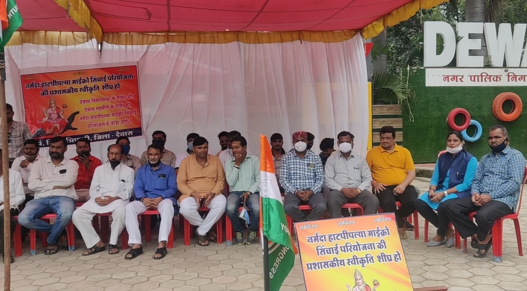 नर्मदा सिंचाई से देवास के गांव और तहसील के गांव को सिंचाई का जल मिल सके इसके लिए सतत आंदोलन नर्मदा जल मांग को लेकर चलाया जा रहा है नर्मदा जल की मांग को लेकर नर्मदा रथ गांव गांव चलाया गया युवक कांग्रेस द्वारा पदयात्रा की गई प्रमुख मंदिरों में नर्मदा का जल कलश के रूप में स्थापित किया गया धरना आंदोलन के माध्यम से सरकार को जगाने का कार्य किया जा रहा है देवास से भोपाल तक जनप्रतिनिधि से लेकर प्रशासनिक अधिकारियों को बार-बार देवास विधानसभा एवं देवास तहसील के ग्रामों को जोड़ने के लिए अवगत करवाया गया है इन्हीं मांगों को लेकर आज नर्मदा हाटपिपलिया माइक्रो परियोजना की प्रशासकीय स्वीकृति जल्द से जल्द हो इसको को लेकर धरना दिया गया। एवं मांग की गई कि हमारी मांग पूरी ना होने पर आगे भी आंदोलन जारी रहेगा धरने में मुख्य रूप से पंडित जयप्रकाश शास्त्री भगवान सिंह जी चावड़ा एजाज नीलम मोंटू दरबार चंद्रपाल सिंह सोलंकी प्रदीप चौधरी राजेश राठौर हिम्मत सिंह चावड़ा दिग्विजय सिंह झाला विजय चौहान दीपक शर्मा हमें दुआ अमन श्रीवास शुभम सिसोदिया रुपेश शर्मा आदि बड़ी संख्या में कांग्रेसी जन मौजूद रहे