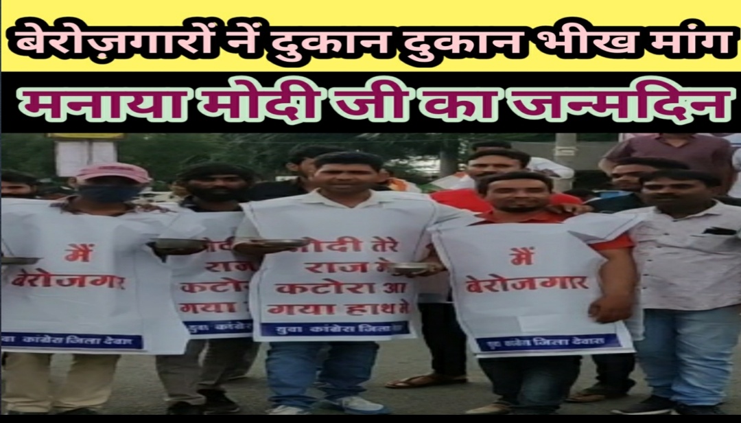 बेरोज़गारों नें गले में बैनर डाल शहर में दुकान दुकान कटोरें बजा भीख मांगकर मनाया मोदी जी का जन्मदिन।आज युवा कांग्रेस जिलाध्यक्ष जितेंद्र सिंह गौड़ के नेतृत्व में प्रधानमंत्री नरेंद्र मोदी के जन्मदिन को राष्ट्रीय बेरोजगार दिवस के रूप में मनाया गया। जिसमें युवा कांग्रेस कार्यकर्ताओं द्वारा रोड़-रोड एवं दुकान-दुकान हाथ में कटोरा लेकर भीख मांगी गई साथ ही कार्यकार्यताओ द्वारा नारे लगाए गए मोदी तेरे राज में कटोरा आ गया हाथ में । सोशल मीडिया जिला संयोजक विनोद राठौर पोलाय ने बताया कि प्रधानमंत्री मोदी ने देश के युवाओं से हर साल 2 करोड़ रोजगार देने का वादा किया था। प्रतिवर्ष 2 करोड युवाओं को रोजगार देंगे परंतु उल्टा करोड़ों युवा बेरोजगार हो गए आज युवा वर्ग धक्के खाने को मजबूर है महंगाई दिन प्रतिदिन बढ़ती जा रही है आम जनता के जीवन यापन कठिन हो गया है। जिसमे दो छात्र ने अपनी कॉलेज की फीस भरने के के लिए भी हाथ में कटोरा लेकर भीख मांगती लेकिन आज उनकी युवा विरोधी नीतियों के कारण देश में 7 साल के भीतर करोड़ों नौकरियां खत्म हुई हैं। सिर्फ एक साल में ही 15 करोड़ से ज्यादा रोजगार खत्म हुए हैं और 97% लोगों की आय में कमी आई है।देश का युवा हर स्तर पर परेशान है। एक तरफ रोजगार खत्म हो रहे हैं दूसरी तरफ केंद्र सरकार के विभिन्न विभागों में करीब 7 लाख पद खाली पड़े हैं। ग्रुप C के 5 लाख 75 हजार पद खाली हैं। ग्रुप B के 90 हजार पद खाली हैं और ग्रुप A के करीब 20 हजार पद खाली हैं। पूरे देश में 10 लाख 60 हजार 139 से ज्यादा शिक्षकों के पद खाली पड़े हैं। सेना में एक लाख सात हजार से ज्यादा पद रिक्त हैं। इस अवसर पर शहर अध्यक्ष मनोज राजानी पूर्व महापौर जय सिंह ठाकुर जयप्रकाश शास्त्री शौकत हुसैन,ज़िला अल्पसंख्यक अध्यक्ष कांग्रेस ईशान राणा,विक्रम पटेल दिपेश चंद्रपाल सिंह सोलंकी कृपाल सिंह मकवाना हर्ष प्रताप सिंह गौड़ हर्षराज राठौर अभिषेक चौहान शुभम जलोदिया नरेश बैरागी सआदि उपस्थित थे। आभार वरिष्ठ कांग्रेस नेता अजीत भल्ला ने माना।
