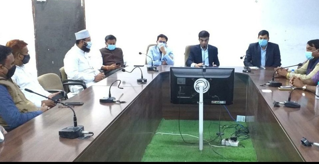 *कोरोना वैक्सीनेशन के संबंध में एक महत्वपूर्ण बैठक आज शाम कलेक्टर साहब की अध्यक्षता में कलेक्टर ऑफिस में संपन्न हुई। इस बैठक में नायब काजी नोमान अहमद अशरफी साहब, प्रमुख समाज सेवी शौकत हुसैन, हारिस गजधर, शाहिद मोदी, सैयद मकसूद सर,अकरम शेख,अकील शेख आदि प्रमुख रूप से मौजूद थे।*