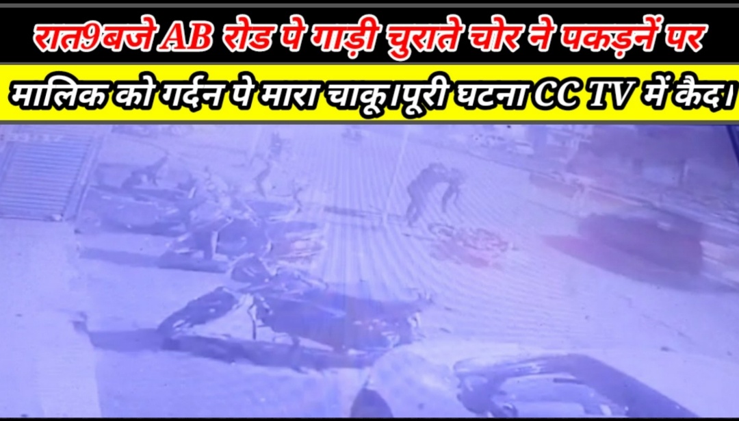 रात9बजे AB रोड पे गाड़ी चुराते चोर ने पकड़नें पर मालिक को गर्दन पे मारा चाकू।पूरी घटना CC TV में कैद।