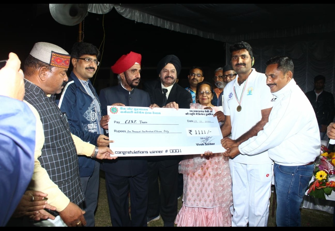 बैंक नोट प्रेस कर्मचारी कांग्रेस इंटक की ओर से स्वर्गीय प्रकाश चंद्र शेट्टी की स्मृति में एक दिवसीय क्रिकेट टूर्नामेंट का आयोजन किया गया जिसमें मुख्य अतिथि दिलीप राजपाल पूर्व मंत्री एवं राष्ट्रीय सचिव अल्पसंख्यक कांग्रेस श्रीमती राजपाल कार्यक्रम की अध्यक्षता मुख्य महाप्रबंधक श्री राजेश बंसल जी के द्वारा की गई विशेष विशेष अतिथि के तौर पर अपर महाप्रबंधक अशोक कुमार अरोरा गुरु चरण सलूजा खुर्शीद मंसूरी मुख्य महाप्रबंधक द्वारा श्री दिलीप राजपाल जी का शॉल श्रीफल से एवं पुष्पगुच्छ से स्वागत किया गया इंटक के अध्यक्ष प्रदीप सांगते के द्वारा मुख्य अतिथियों का स्वागत किया गया साथी इंटक के कार्यवाहक अध्यक्ष तरुण मिश्रा महासचिव जाहिद पठानऔर पीएफ ट्रस्टी भुवन साहू द्वारा अतिथियों का स्वागत किया गया स्वागत की इस कड़ी के बाद मुख्य महाप्रबंधक एवं अतिथियों के द्वारा दीप प्रज्वलन कर स्वर्गीय प्रकाश चंद्र शेट्टी की तस्वीर पर माल्यार्पण किया गया पुष्प अर्पित कर श्रद्धांजलि अर्पित की गई इसके बाद पुरस्कार वितरण का कार्यक्रम हुआ जिसमें विजेता टीम कैप्टन मीणा जी के नेतृत्व में केंद्रीय औद्योगिक सुरक्षा बल एवं उपविजेता टीम के कैप्टन महेश मीणा के नेतृत्व में ब्लू स्टार टीम को ट्रॉफी व मेडल देकर सम्मानित किया गया साथ ही सभी कैप्टन को ट्रॉफी देकर मनोबल बढ़ाया खेल भावनाओं को बढ़ाने के लिए बेस्ट बैट्समैन बेस्ट बॉलर एवं बेस्ट फील्डर मैन ऑफ द सीरीज का सभी को पुरस्कार दिया गया मुख्य महाप्रबंधक द्वारा अपने उद्बोधन में कहा गया कि बैंक नोट प्रेस का कर्मचारी स्पोर्ट्स के साथ-साथ अपने कार्य के प्रति निष्ठावान है और नोईकाईयो में बैंक नोट प्रेस अपनी अग्रिम भूमिका निभा रहा है मुख्य अतिथि दिलीप राजपाल जी द्वारा स्वर्गीय प्रकाश चंद्र शेट्टी के बारे में बताया गया कि बैंक नोट प्रेस स्वर्गीय प्रकाश चंद्र शेट्टी की देन है ऐसे कई रोजगार सेटी जी ने मध्य प्रदेश और देश ने स्थापित किए हैं जिससे कि कई प्रदेशवासियों देशवासियों को रोजगार मिला है दृष्टिहीन कन्या विद्यालय के संचालक गुरु चरण सिंह जी सलूजा जी ने कहा कि बैंक नोट प्रेस का सहयोग हमेशा दृष्टिहीन कन्या विद्यालय को मिला है ऐसे सेवा के कामों में बैंक नोट प्रेस हमेशा आगे रहा है मुख्य महाप्रबंधक द्वारा सफल आयोजन कराने पर कर्मचारी कांग्रेस इंटक के सभी पदाधिकारी एवं कार्यकर्ताओं को बधाई दी गई आयोजन समिति के द्वारा लंच एवं नाश्ते की व्यवस्था की गई वैभव पेखले शिवम शर्मा विवेक सोनकर महेश चंदन युवराज सिंह दीपक पारुचे शुभम चक्रवर्ती गणेश वाघमारे मोहित कुमार गौरव मिश्रा का विशेष सहयोग रहा क्रिकेट के कॉमेंटेटर मोहम्मद यूसुफ धर्मेंद्र मिश्रा 
