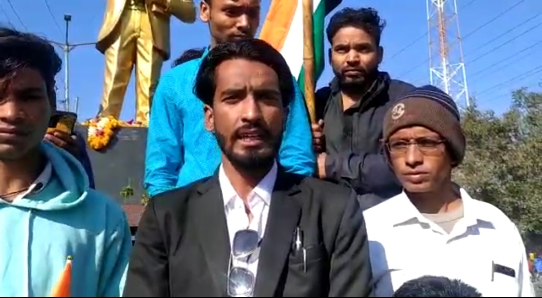 गणतंत्र दिवस पर बाबा साहब की प्रतिमा पर माल्यार्पण करने गए भीम आर्मी, आजाद समाज पार्टी के कार्यकर्ता एवं पदाधिकारी प्रतिमा के आसपास गंदगी धूल मिट्टी देख भड़क