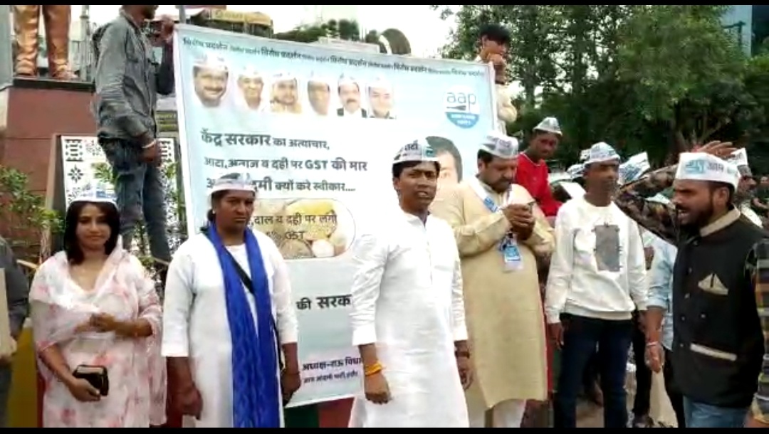 दूध दाल और अनाजजैसे उत्पाद जो कि आम आदमी की थाली के भोजन के रूप में सबसे ज्यादा इस्तेमाल में आते हैं मोदी सरकार ने इन पर भी जी एस टी लगा दिया इसी के विरोध स्वरूप आम आदमी पार्टी आंदोलनरत है ।वहीं पार्टी के कमल गुप्ता ने कहा कि जीएसटी के भयानक स्वरूप के खिलाफ आम आदमी पार्टी हर गली मोहल्ले में आंदोलन करेगी। इस दौरान आम आदमी पार्टी के सभी कार्यकर्ता उपस्थित रहे प्रदेश उपाध्यक्ष मुकेश उपाध्याय, जिला अध्यक्ष डॉ. पियूष जोशी, शिवम सिंह,सतीश मालिक,कमल गुप्ता,मनोज यादव,युवराज सिंह,हेमंत अहूजा और कई आप कार्यकर्ता मौजूद थे