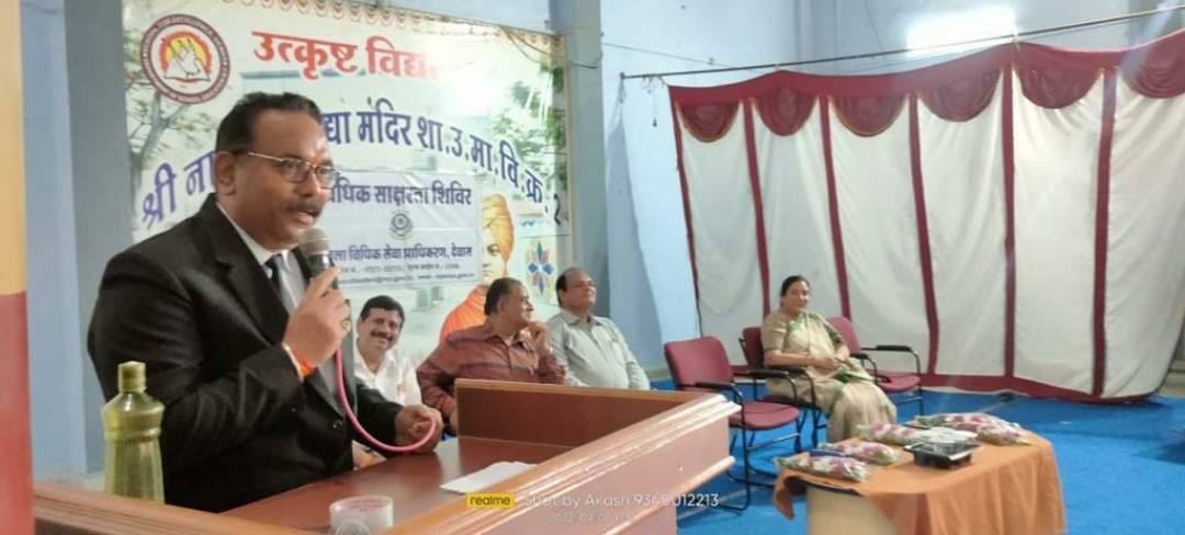 श्री हीरालाल खुशाल द्वारा साक्षरता से तात्पर्य न केवल अक्षर ज्ञान होना अपितु संपूर्ण व्यक्तित्व का विकास होना बताया निहारिका सिंह सचिव जिला विधिक सेवा प्राधिकरण देवास द्वारा अपने संबोधन में सालसा की मध्यस्थता एवं लोकउपयोगी जन अदालत योजनाओं की जानकारी दी ।