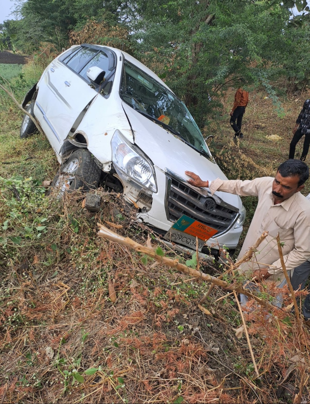 बताया जा रहा है कि गाय को बचाने में अचानक कार अनियंत्रित होकर सड़क किनारे खंती में जा गिरी।