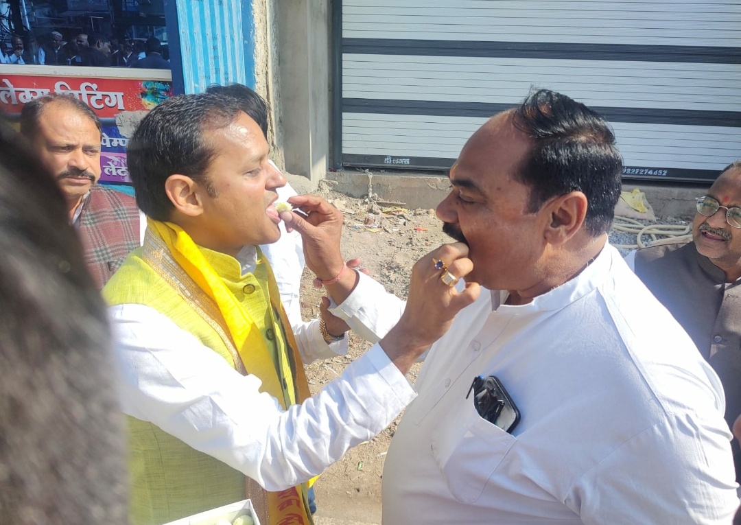 - कांग्रेस के परिवारजनों को प्रवेश अग्रवाल ने मिठाई खिलाकर, नया साल नई सरकार की संकल्प यात्रा का किया शुभारंभ