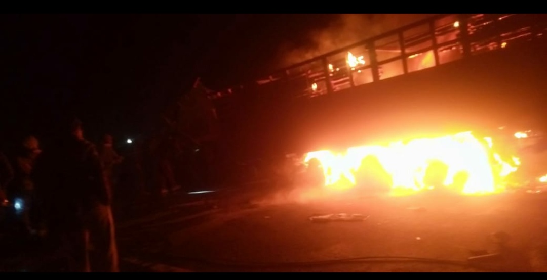 देवास में आज अलसुबह 4 बजे मक्सी रोड़ पर टोंककला और चिड़ावद के बीच भेरवाखेड़ी गांव के निकट पुल पर लोहे की प्लेट्स से भरा ट्राला दुर्घटनाग्रस्त हो गया। दुर्घटनाग्रस्त होने के बाद ट्राले में अचानक आग लग गई। इस दौरान ड्राइवर ,क्लीनर ट्राले में फंसे रहे।