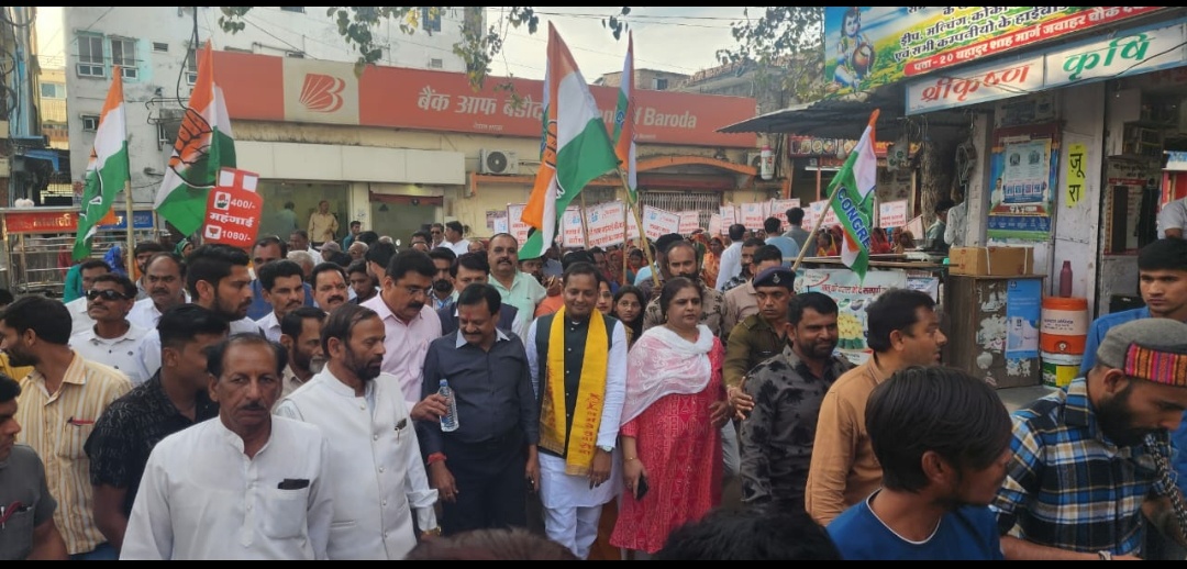 प्रवेश के साथ शहर कांग्रेस ने हाथ से हाथ जोड़ों यात्रा का किया भव्य शुभारंभ