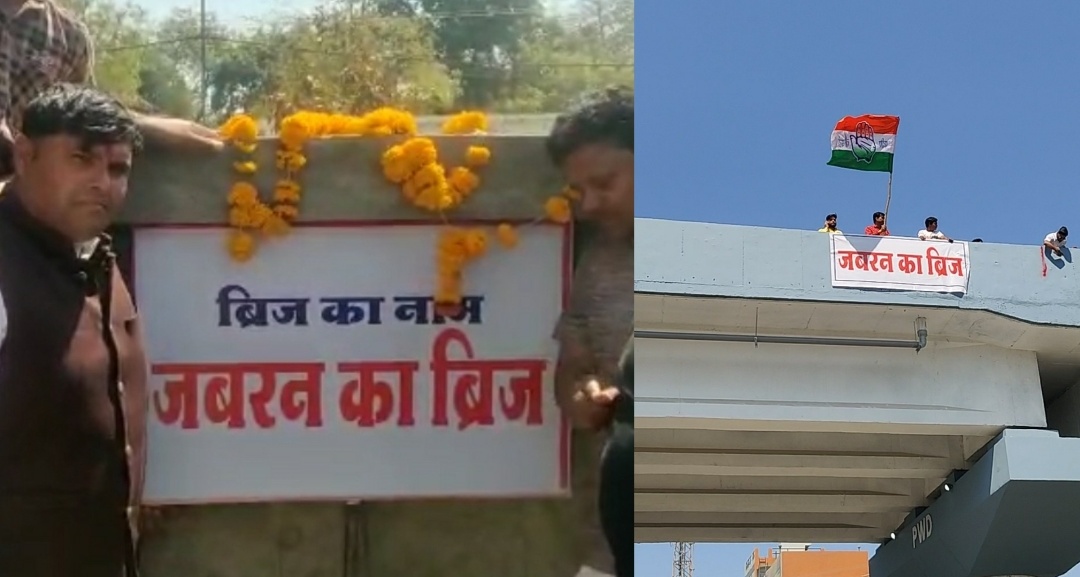 जगह परिवर्तन का विरोध करते हुए आज कांग्रेसियों द्वारा इसका नामकरण जबरन ब्रिज कर दिया गया।कांग्रेसियों ने जबरन ब्रिज के बैनर ,पोस्टर ब्रिज पर लगा दिए।