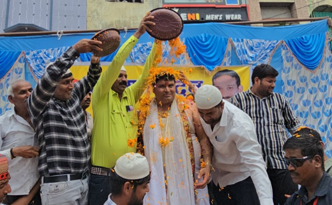 शहर के मुस्लिम समाज ने नयापुरा में मंच लगा कर श्रद्धालुओं का स्वागत किया। संस्था सिद्धि विनायक के प्रदीप चौधरी का मंच पर मुस्लिम समाज द्वारा फूल बरसा कर स्वागत किया गया।