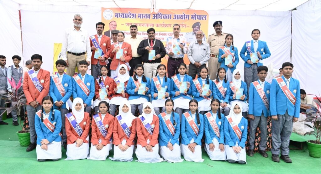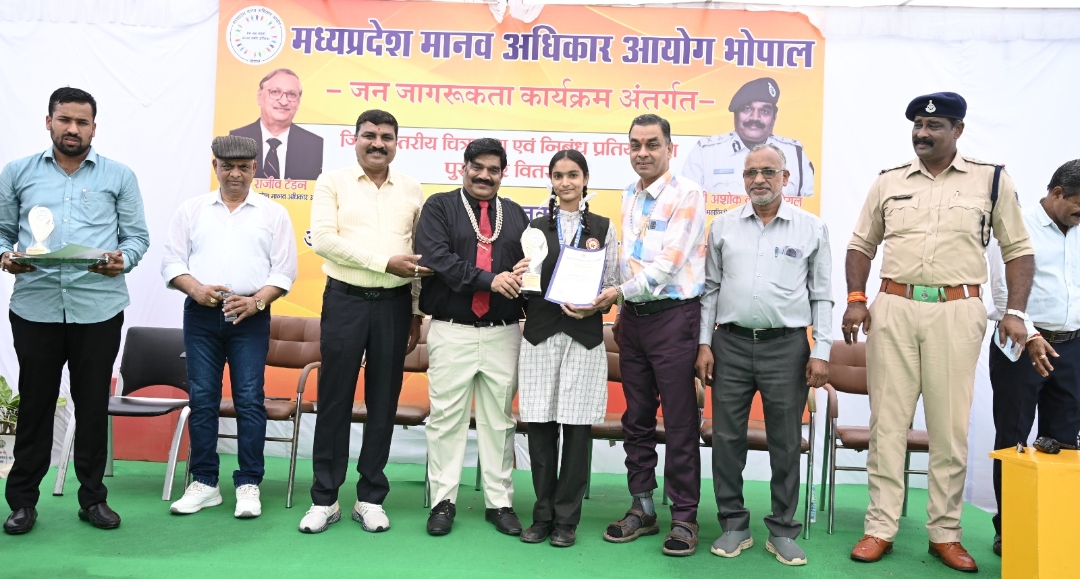 मध्य प्रदेश मानव अधिकार आयोग के जनजागरण कार्यक्रम के अंतर्गत अशासकीय विद्यालय संगठन और इनोवेटिव स्कूल द्वारा जिला स्तरीय निबंध एवं चित्रकला प्रतियोगिता का आयोजन किया गया। आज संपन्न हुए पुरस्कार वितरण कार्यक्रम में मुख्य अतिथि के रूप में मध्य प्रदेश मानवाधिकार आयोग, भोपाल के पुलिस महानिरीक्षक श्री अशोक कुमार गोयल (IPS) उपस्थित रहे। कार्यक्रम की अध्यक्षता अशासकीय शिक्षण संचालक संघ के अध्यक्ष श्री राजेश खत्री ने की तथा विशेष अतिथि के रूप में सचिव श्री दिनेश मिश्रा सम्मिलित हुए।